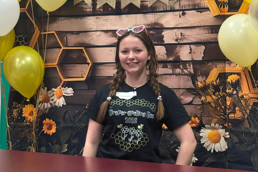 Congratulations to eighth grader Delaney Wilson, who claimed the Draper Middle School Spelling Bee Championship by correctly spelling the word “chartreuse.” Delaney will move on to represent Draper Middle School at the regional competition, which will be held at The Red Bookshelf in Albany on March 28.