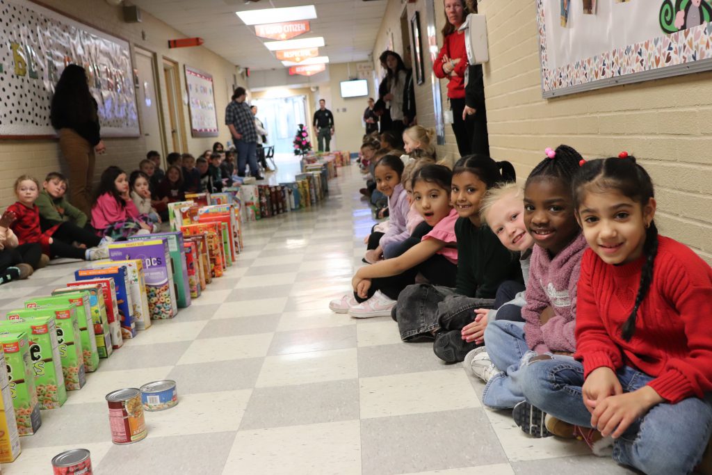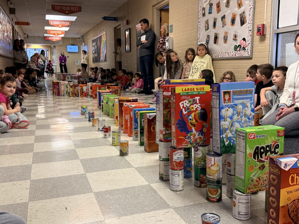 The donated boxes were arranged down the hallway to create a powerful domino display symbolizing the ripple effect of kindness. When the last box was set in place, the first was tipped over, triggering a chain reaction. As each box fell, students witnessed how one small act can spark a much larger impact.