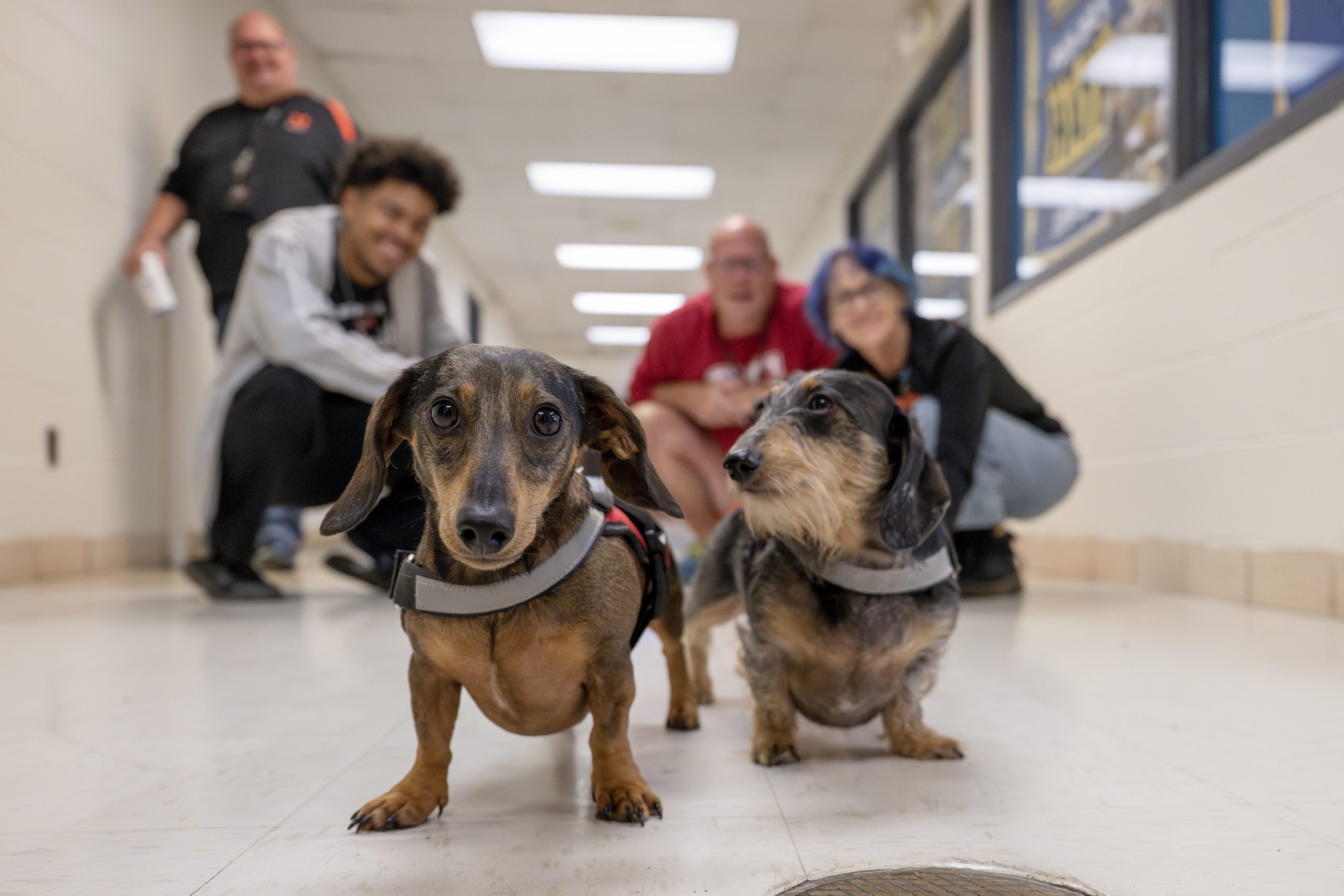 Meet Liesl and Otto, three-year-old mini dachshunds who support students and staff at the high school. Their owner, student assistance counselor Diane Blinn, shares how Liesl and Otto help lift spirits at the high school. Below is a Q&A with Ms. Blinn.